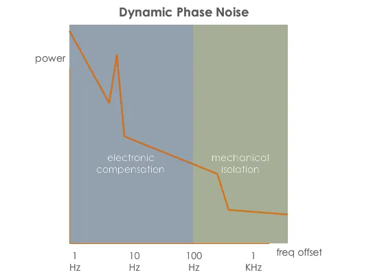 Passive isolation (mechanical damping) can have a profound effect on the acceleration sensitivity of the reference clock. If the input vibration is reduced, the attenuation will also be reduced. Passive isolation does have its disadvantages, and the system can become quite large depending on what is being isolated.