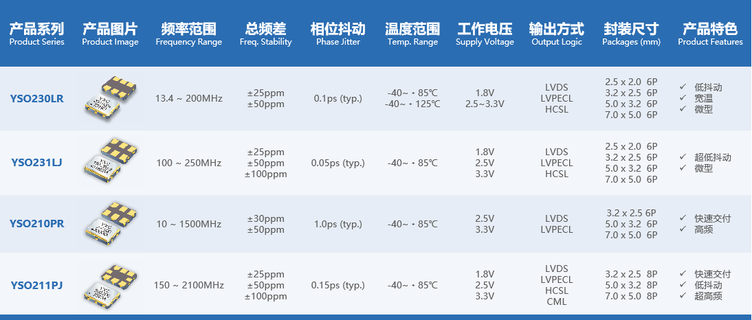 Yangxing Technology, the original domestic crystal oscillator, provides a comprehensive series of differential crystal oscillators, providing low jitter, low phase noise, and high-precision clock solutions for video processors. For video processor applications, the main product series and featured advantages are as follows: