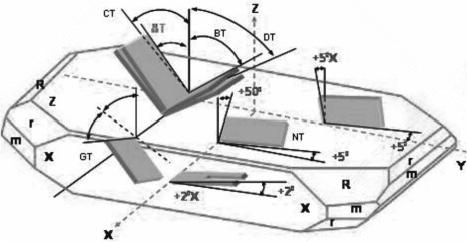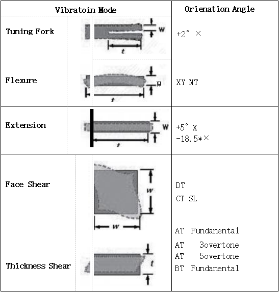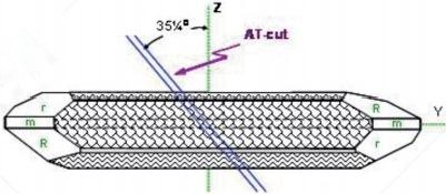 Depending on the cut angle of the quartz rod, there are different types of quartz plates, such as AT, BT, CT, DT, NT, and GT cuts. These different types of quartz plates, represented by a set of Euler angles, have different available elastic, piezoelectric, and dielectric properties. These are fundamental parameters for designing quartz crystal devices. The most commonly used quartz cut types are shown in Figure 3.