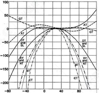 Quartz products are mostly used as circuit components for frequency selection and/or frequency control, so the device's frequency-temperature characteristics are the most important parameter. This part-per-million (ppm)-level frequency-temperature stability is another advantage of quartz frequency devices, something that LCR discrete-component oscillator circuits cannot achieve in mass production. The frequency-temperature characteristics of commonly used quartz crystal cuts are shown in Figure 5.