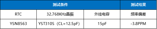 The following test results show the clock frequency stability achieved by RTC YSN8563 with YXC 32.768kHz crystal.