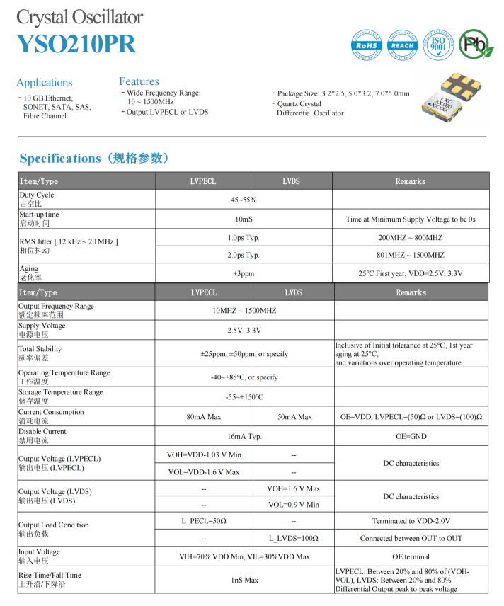 Ø High precision, high stability: Provide ultra-high precision differential crystal oscillator with FS±25ppm