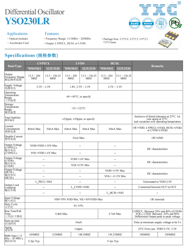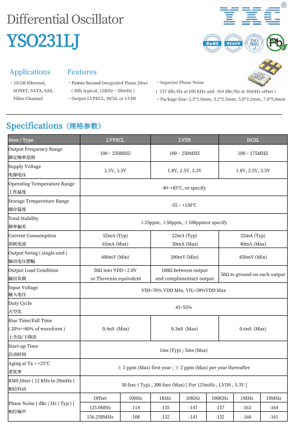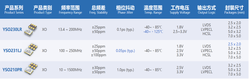In order to meet the increasingly stringent timing signal requirements of high-speed data transmission and processing scenarios, YXC has launched a series of low-jitter, high-precision, high-frequency, miniaturized, and high-temperature resistant differential crystal oscillator products to provide highly reliable clock solutions for related application scenarios.