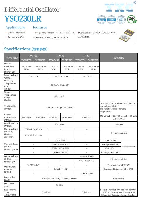 YXC crystal oscillator YSO230LR series, frequency is 148.5MHz, total frequency difference ±50PPM, the following is the YSO230LR series specifications.