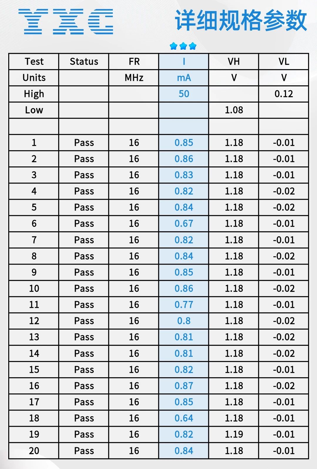 Test parameters: OSC 2016 8M 1.2V CMOS -40~85℃