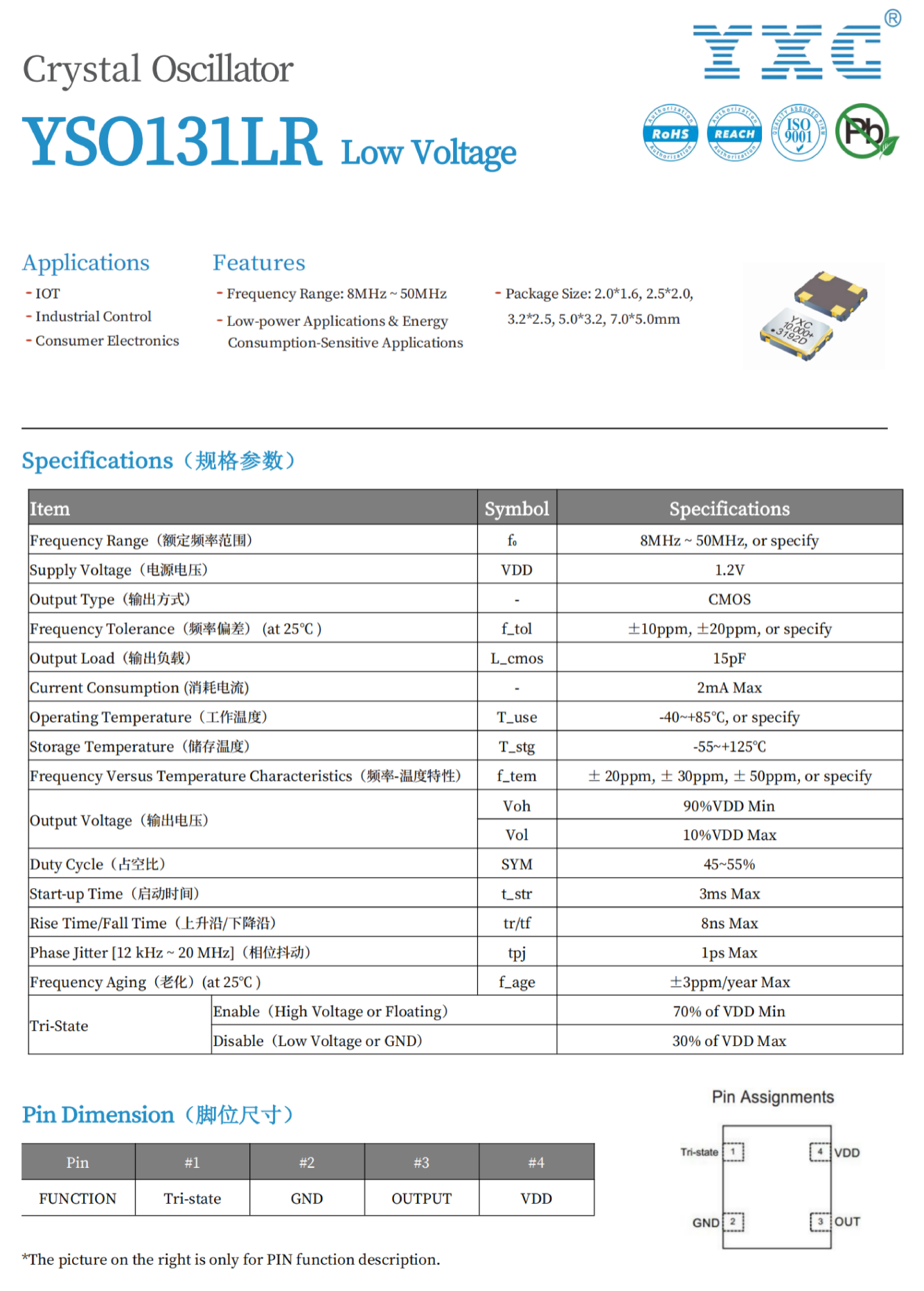 The YSO131LR series is a CMOS output active crystal oscillator with an operating voltage of 1.2V. Its notable feature is that the supply current is as low as 2mA,making it very suitable for low-power applications.