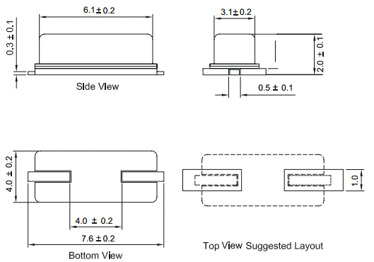 Dimension : 6.1 x 4.0 x 2.0 mm