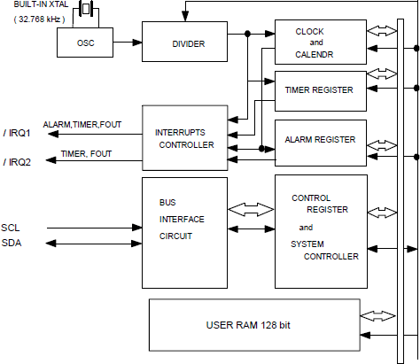 | IRQ1 | Output | This pin outputs interrupt signals ("L" level) for alarm, timer, time update, and 32.768kHz. This is an N-ch open-drain output. |