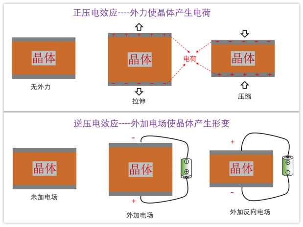 Based on the previous understanding of the piezoelectric effect, the crystal can convert electrical energy into mechanical energy, and then mechanical energy can be converted into electrical energy. If an alternating current is passed through the crystal, the contraction and expansion represent mechanical vibration.
