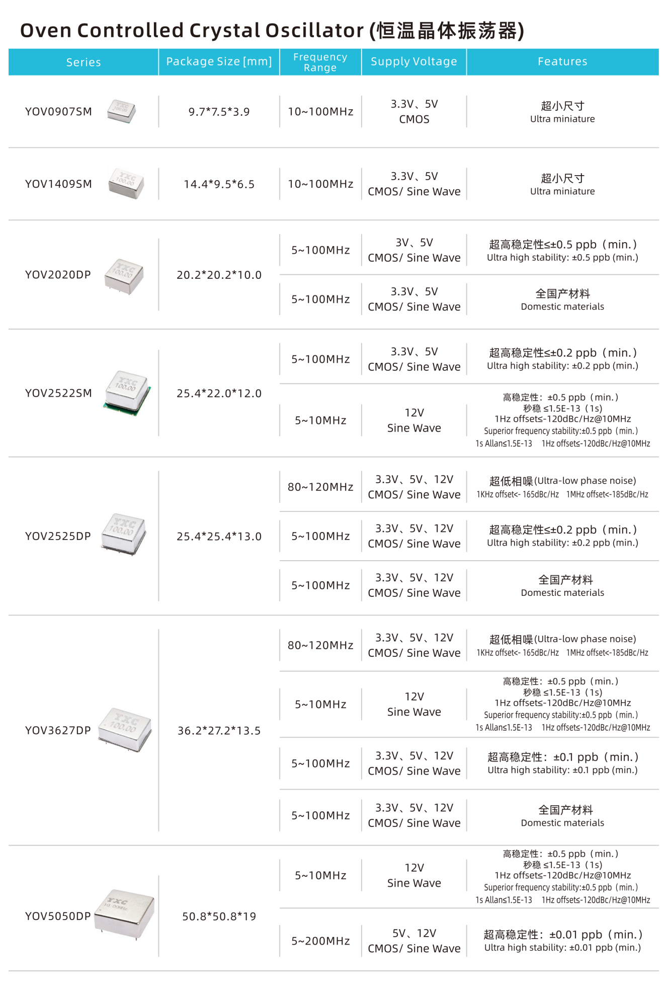 To address the customized requirements of GNSS receivers in diverse scenarios, Yangxing Technology has developed a comprehensive OCXO product portfolio that optimally balances precision, compactness, and power efficiency. The key product lines and core specifications are as follows: