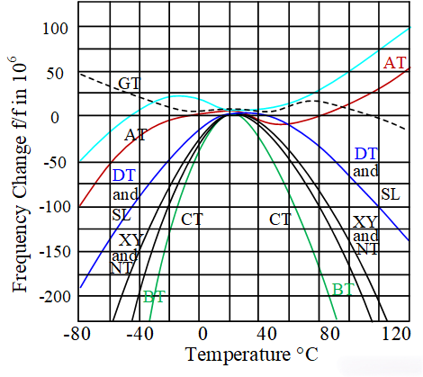 AT cut: It is suitable for high-frequency applications in a wide temperature range, with low cost and easy mass production.