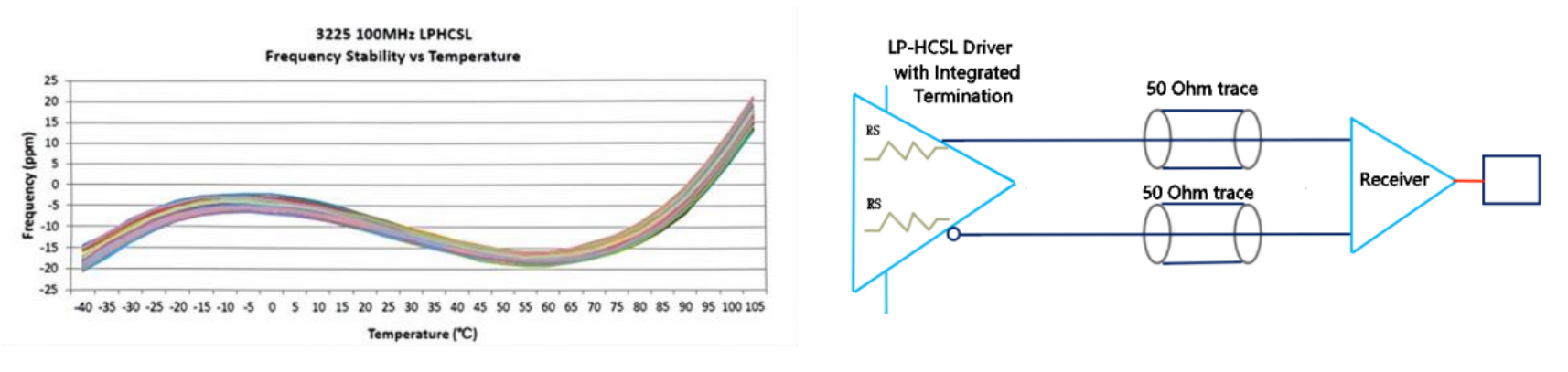 LPHCSL has excellent high temperature stability, operating temperature range of -40°C to +105°C, suitable for demanding environments, frequency stability and circuit diagram are shown in the figure below.