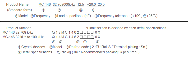 | Load capacitance | CL | 7pF, 9pF, 12.5pF | Please specify | |