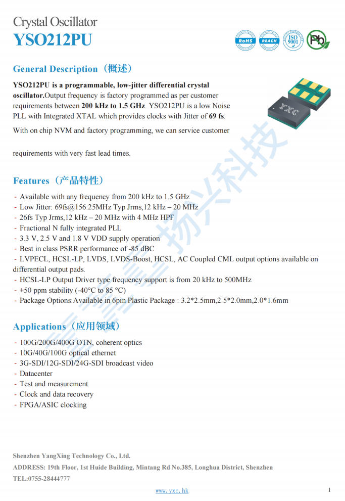 * Ultra-low jitter: 0.069ps typ.@156.250MHz