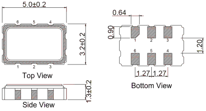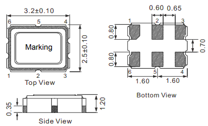Dimension : 3.2 x 2.5 x1.2 mm 5.0 x 3.2 x 1.3 mm 7.0 x 5.0 x 1.3mm