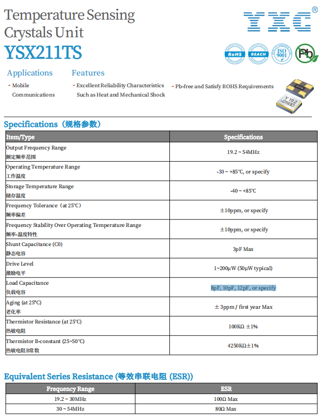 Load Capacitance : 8pF, 10pF, 12pF, or specify