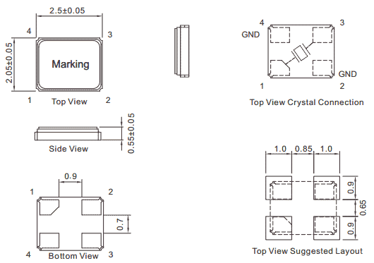 | Dimensions | 2.5 x 2.0 x 0.55 mm |